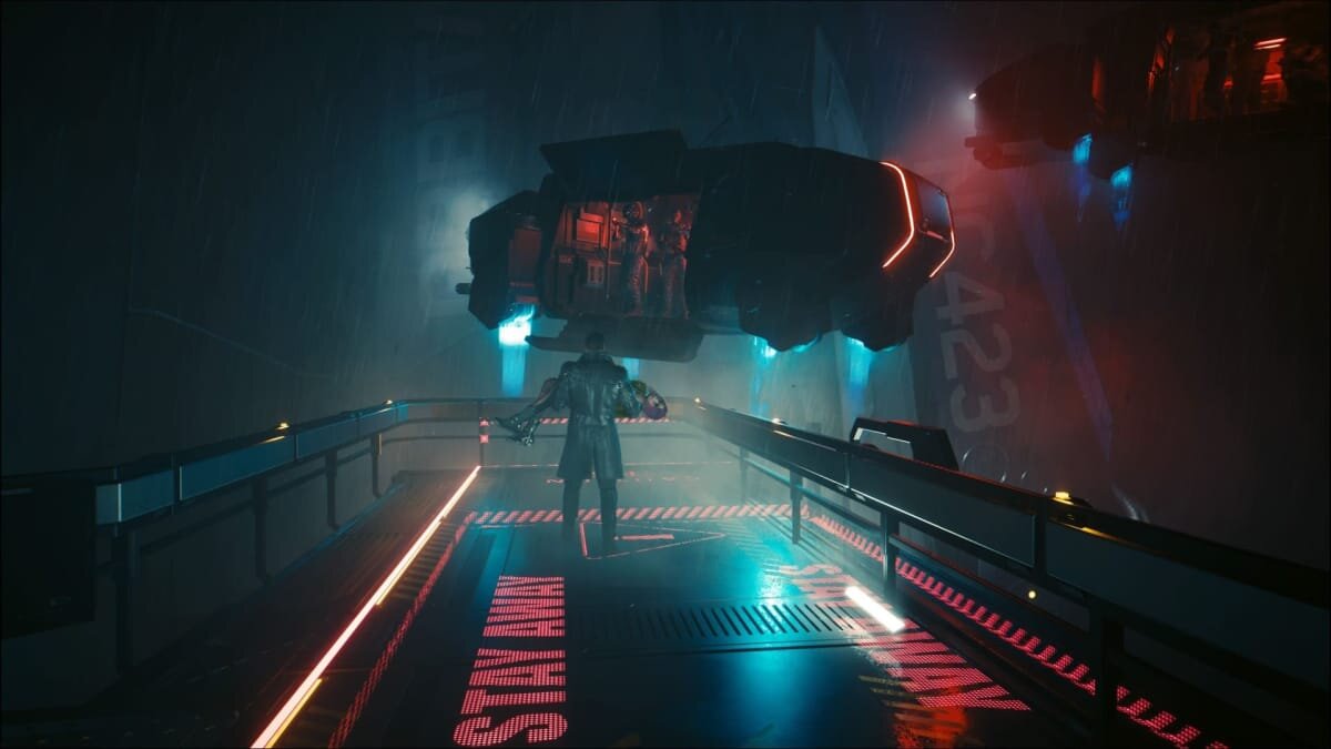 После того, как вы закончите диалог с Джонни, прилетит дирижабль с агентами NUSA. Присоединяйтесь к ним. Взгляните в последний раз на Найт-Сити, прежде чем лечь под нож.
