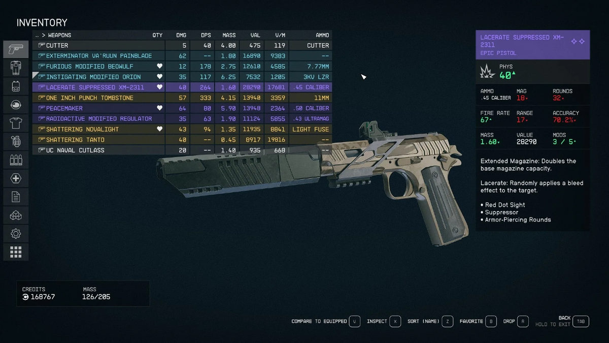Как и SkyUI для Skyrim, StarUI объединяет и добавляет функциональность экранам инвентаря в Starfield. Вы сможете увидеть больше полезной информации по вашему инвентарю, а также массу, стоимость и соотношение стоимости к массе для каждого предмета и любые другие соответствующие детали, на экране оружия также отображаются урон, урон в секунду и боеприпасы каждого оружия, поэтому вам не придется копаться в меню, чтобы найти эту информацию. StarUI доступен для загрузки на NexusMods.