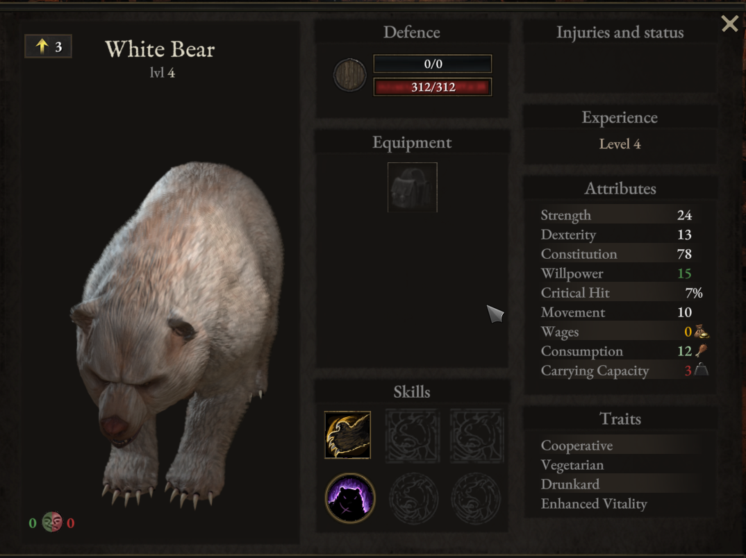 В игре Wartales вам доступно множество типов бойцов, как людей так и животных. Самым сильным и полезным питомцем является медведь.