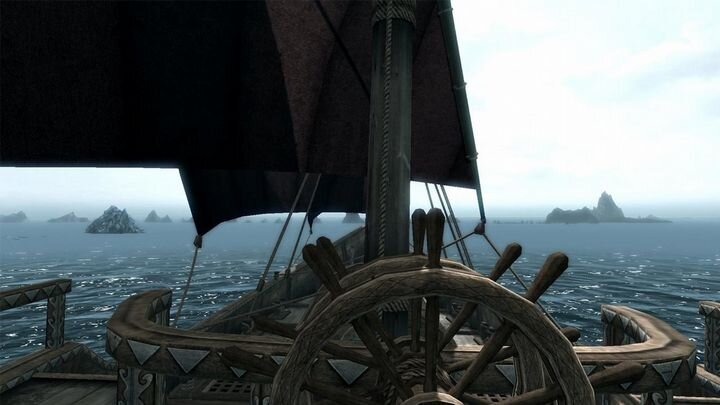 Что немаловажно, с модом мы также можем использовать корабль для экспедиций по водам карты из базовой версии Skyrim. Однако игра не была разработана с учетом этого, и это вызывает небольшие проблемы. В модификации есть скрипты, распознающие контакт с землей, но чтобы корабль вообще двигался, авторам пришлось отключить обнаружение столкновений, чтобы можно было... проплыть через другой корабль.