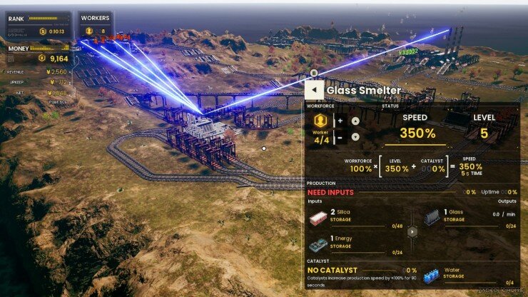 Возможно, самым большим преимуществом RAILGRADE является то, насколько интуитивно и четко все представлено. Несмотря на то, что на большинстве этапов вам придется разрабатывать решения самостоятельно и у вас есть полная свобода в том, где вы размещаете свои пути и как по ним ходят ваши поезда, интерфейс просто фантастический, предоставляя вам всю информацию, которая вам понадобится для того, чтобы преуспеть. Например, нажав на завод, вы можете четко увидеть, какие ресурсы требуются и куда можно отправить продукцию. Вы также можете распределять человеческие ресурсы, а также вкладывать деньги в модернизацию объектов, а если учесть бонусы, такие как катализаторы, которые сделают работу более гладкой, вас ждет интересная и увлекательная задача.